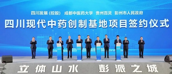 12月28日,四川现代中药创制基地项目签约仪式在彭州市双湖科技园创新中心举行,总投资达110亿元的中医药全产业链项目——四川现代中药创制基地正式落户彭州。成都市委副书记、市长王凤朝;四川省药品监督管理局党组书记、局长张大中;成都中医药大学党委书记刘毅;四川发展(控股)有限责任公司党委书记、董事长张宜刚,党委副书记、副董事长、总经理郭勇;四川省经济合作局党组成员、副局长王毅;彭州市委书记廖暾出席并见证签约。